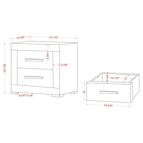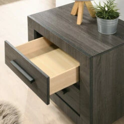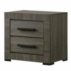 Introduce chic style and useful storage with this contemporary two-drawer nightstand. It features a gray wood grain finish that complements both modern and farmhouse designs and provides for abundant bedside storage of nighttime essentials.