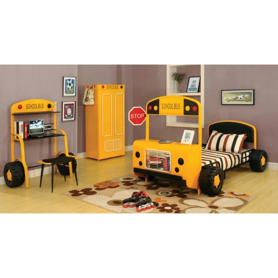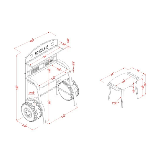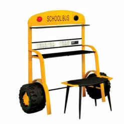 Get your little one excited for school with this elementary school bus inspired workstation desk. Perfect for getting your child ready for kindergarten or completing daily homework, this workstation is a compact design that leaves plenty of floor space for free play. Detailed by a vibrant yellow finish, the workstation features a life-like bus theme complete with wheels and bus decals. Built-in USB and power outlets add functionality while open shelves provide a space for storage or displaying decor. Sit relaxed with the included stool and easily tuck it away under the desk. Fun and feature-full, welcome the Elementary Bus inspired Workstation Desk to your home.