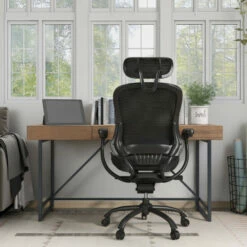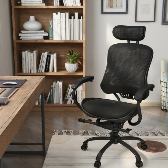 The synchro tilt mechanism with tension control is a high-end ergonomic desk chair. This design helps keep you in an ergonomic position throughout your recline without lifting your feet off the ground. With a 30° recline this seat significantly reduces spinal disk pressure. Its headrest also has a height-adjustable range of 3 inches.