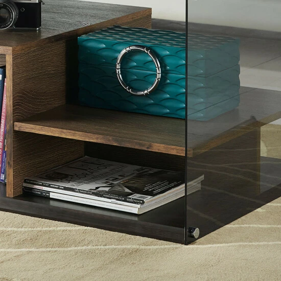 Live luxuriously and savor the sight of this two-toned coffee table in your home office or living room. Made from Furniture of America for the Noella collection, the smooth wenge surface with a slanted edge and tinged glass frame clash marvelously with mellow oak finished shelves. The complex delineation of platforms grants plenty of storage room. Pack it with wisely selected magazine subscriptions and lavish artifacts of your choice. Supported on a platform base, this modern coffee table is constructed from durable MDF and glass materials. Its warm finish is bound to make this piece a focal point in your living space.