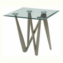 Hey, sometimes you don’t want ordinary, and that’s fine. This end table from the Oddsam collection shirks ordinary, with its magnificent gesture of crossing metal legs. If that wasn’t contemporary enough, the surface is 8mm of slick, tempered glass. Organize it as you wish, this table will be at home in any contemporary decor arrangement, very likely as the center of attention.