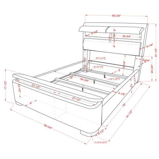 - Overall: 51.5 inches high x 60.75 inches wide x 91.5 inches long