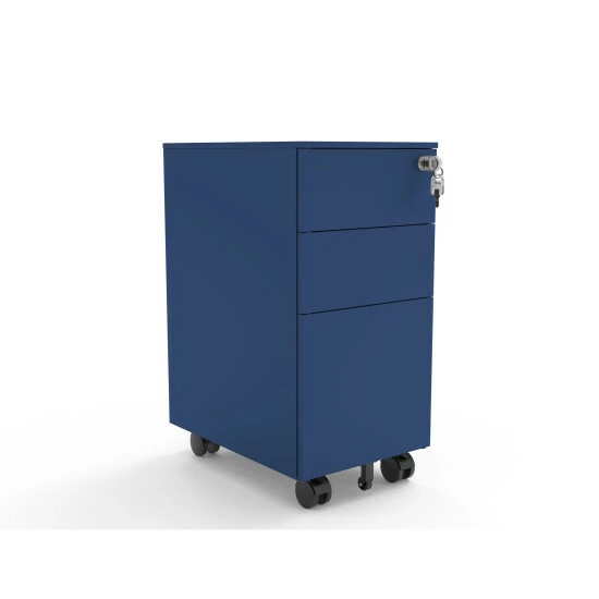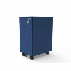 This matte-finished 3-drawer file cabinet is a slender design, perfect for complimenting your desk as easy access filing. The 5-caster mobile accommodation can be locked into any place from beneath your desk to any other corner of your home office. A key locks all three drawers for confidential documents. You’ll find the hanging file bar in the bottom drawer adjusts to fit legal or letter-sized files.
