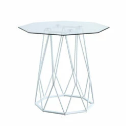 Open up the shades and invite the sunshine in with this modern octagon-shaped end table from Furniture of America. Allow its gleaming, clear tempered glass top to shine elegantly in the light as you display your favorite photos and keepsakes. The 8mm tempered glass tabletop sits on a sleek, steel support with a complex geometric design that lends a museum-like quality while still making a room feel like home. The powder coated base is available in three attractive finishes of black, white, or gold, giving you a variety of alluring options to elevate your decor. Be liberated and manifest your inner stylist with the artfully unique design of this exquisite piece.