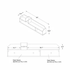- Overall: 16.6 inches high x 63 inches wide x 9.4 inches deep