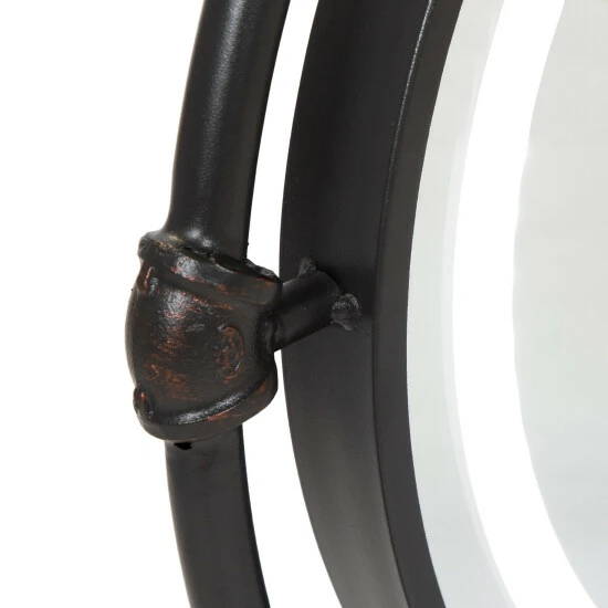 Open up a room with this striking, black wall mirror. Traced with bold lines of steel and adorned with subtle decorative accents, this mirror adds an eye-catching accent to living rooms, bedrooms, and more. This handsome piece is treated to a rich black finish with hints of copper for a multidimensional look.
