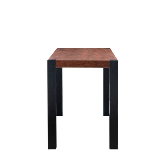 Complete your casual dining area with the transitional Persica dining table from Furniture of America. With a 23-inch width, this narrow table is the perfect choice for small spaces while still comfortably seating four adults at dinner time, or you may choose to use this expansive dinner table as a roomy desk for your home office instead. The sturdy black legs bring everyday stability to this piece and provide contrast to the beautiful vintage walnut-finished top for a two-tone look that works well with modern decorating schemes. Choose this dining table to bring simplicity and function to transitional style living spaces.