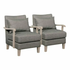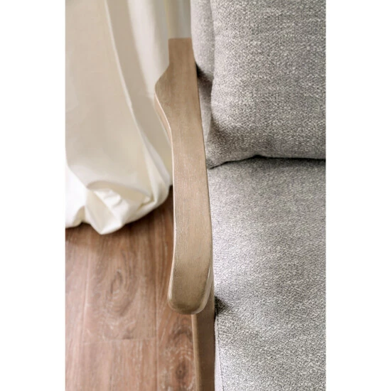 Upgrade the seating in your favorite lounging spot with this accent chair by Furniture of America. Made for the Perth collection, its grey upholstery lends softness and easily meshes with your modern decor. Find comfort as you sit in style while the box cushion seat lends contemporary flair. Foam cushioning and a loose back pillow makes this an incredible comfortable seating arrangement and ensures exceptional relaxation. Wooden block legs render stability, while its curved arms make this piece a wonderfully attractive country or traditional style accent chair. Its vinyl upholstery is easy to clean and quickly creates a focal point in your living space.