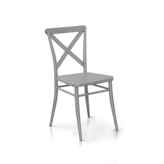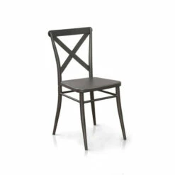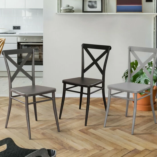 Bring home the versatility and stylish design of this set of two industrial side chairs from Furniture of America. Both chairs are fashioned with sturdy steel construction in a finish that will match virtually any decor. Each sleek chair features a cross-back design that draws the eye and cradles you as you lean back while enjoy good times. The slim legs taper to accentuate the modern-industrial allure, with a slight flare for extra panache. You’ll love how these chairs are ideally suited for the dining room, yet can also be used as an accent chair in a living room or entertainment room as well as a de facto desk chair in a home office. However you choose to use them, this chair set provides an elegant industrial look while promising long-lasting service.