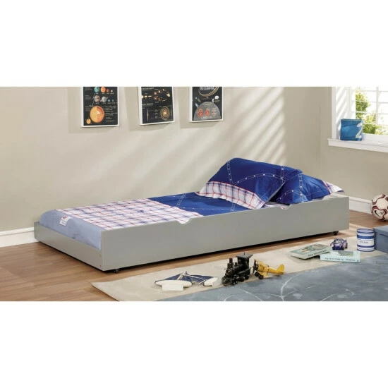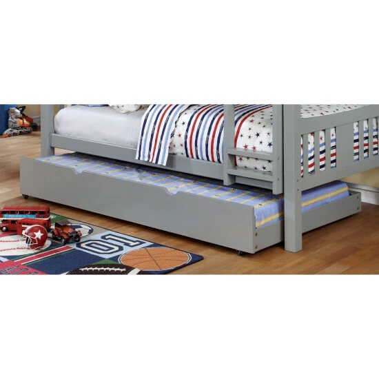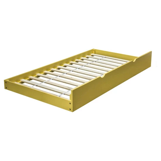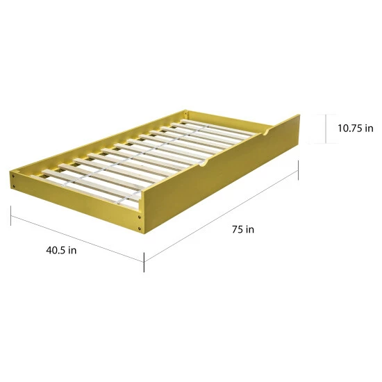 Add a stylish and functional piece to your home with this twin sized wooden pull-out trundle. The twin-size bed rests on caster wheels that allow it to slide out easily from under the bed frame. Crafted of solid wood and wood veneers, this bed is great for kids’ rooms and allows extra bed space for those sleepover parties.