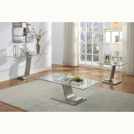 This contemporary end table from Furniture of America adds a sleek vibe to any home. It comes with a satin plated S-design frame and base that brightens the ambiance of any room. It’s crafted with a beveled tempered glass top, with plenty of room for a lamp or picture frame. It has the sleek elegance, and a healthy dose of glam, to help transform any living space.