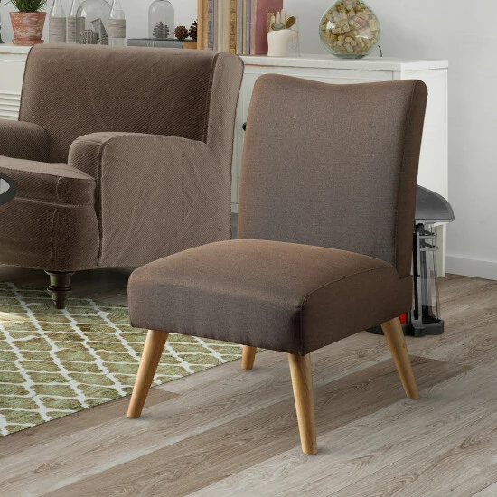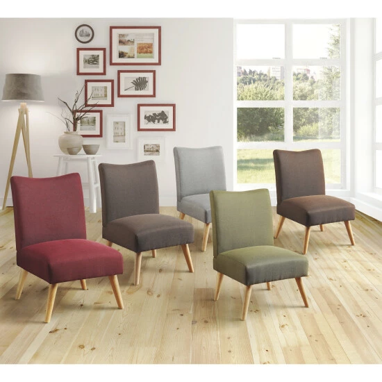 Position this retro accent chair next to your favorite sofa to add a pop of color or neutral accent for a cozy living space. Made by Furniture of America with wonderful comfort in mind, this Pind accent chair creates a cozy atmosphere in your living space. The soft linen upholstery, complemented by mid-century style peg legs, provides the perfect back drop for any family gathering or quiet night in. Dramatically tapered legs finished in a light brown perfectly suits the upholstery of this accent chair. The plush seating is comfortable and cozy with linen-like fabric providing the perfect amount of texture. Bring this upholstered accent chair to your transitional style living area for modern and contemporary appeal.