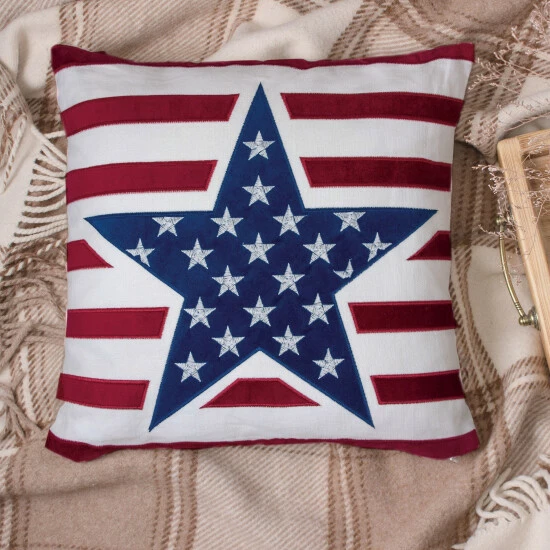 Show off your patriotic side with this set of two accent pillows. The red, white, and blue color palette adds a touch of vibrancy and fun to your space, while the feather fill is soft and comfortable.