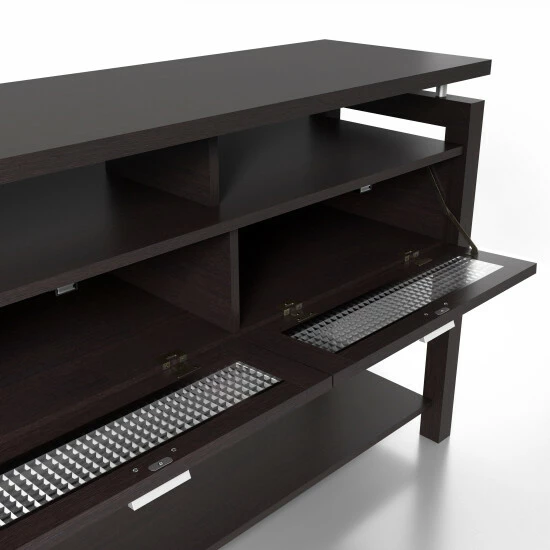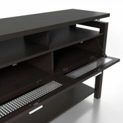 - Spacious open shelf area along bottom