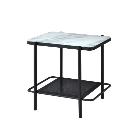 - Tempered, white marble glass tabletop