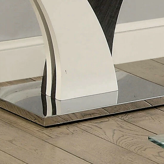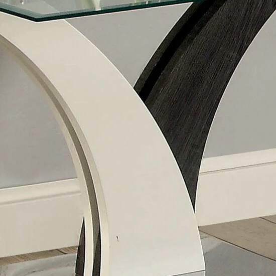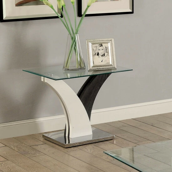 Give your room a contemporary vibe with this modern Quap end table from Furniture of America. The stainless steel base sports a dramatic crossover design and a two-toned color scheme for a sophisticated look. As the pedestal base serves as the focal point, You”ll feel happy to set photos frames and decorative objects atop the generous tempered glass surface to keep essentials close at hand. This white and dark gray end table makes an elegant addition to modern and contemporary living spaces, serving transitional style homes with incredible style and function. Choose this incredible end table for a sleek aesthetic with plenty of room to display your favorite belongings.