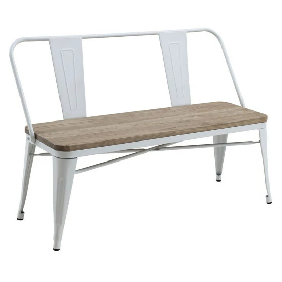 Enhance your home with the warm yet industrial appeal of this two-tone dining bench from Furniture of America. Its combination of materials and tones impart a transitional look that’s at once modern and rustic. It’s crafted with a durable metal frame featuring a curved back design that smoothly connects to a double back panel, allowing an open and airy environment. The spacious seat is made of solid wood and features wood grain details and comfortably seats 2 people. It stands on 4 sharply tapered legs reinforced by x-shaped metal supports. This bench offers any dining space an industrial ambiance with rustic touches.