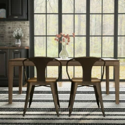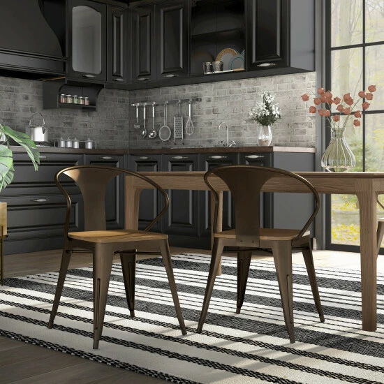 Update your home with chic urban appeal when you add this set of 2 side chairs from Furniture of America. The chairs are fashioned in a combination of materials and tones that convey an industrial look with rustic elements. Each chair comes with a durable metal frame featuring a curved armrest and back design that smoothly connects to a back panel for an open, airy appeal. The spacious solid wood seat has a smooth finish and features wood grain details, and the 4 sharply tapered legs are reinforced by x-shaped metal supports. You’ll love the warm ambiance of this set of 2-tone chairs in any dining space, and its sturdy craftsmanship will endure for years.