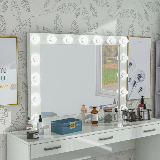 - STYLISH: light bulbs trim the frame for a hollywood look