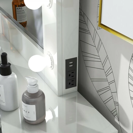 Create a Hollywood glam bedroom with this mirror. The classic design features light bulbs that trim the frame. Built-in power outlets and USB ports on the right side offer convenience when blow drying hair and charging devices.