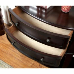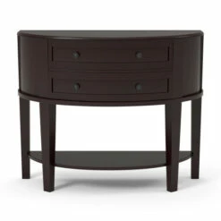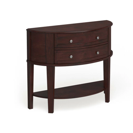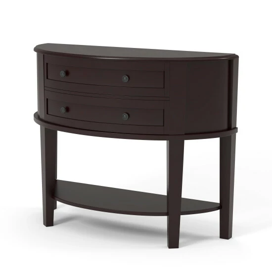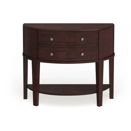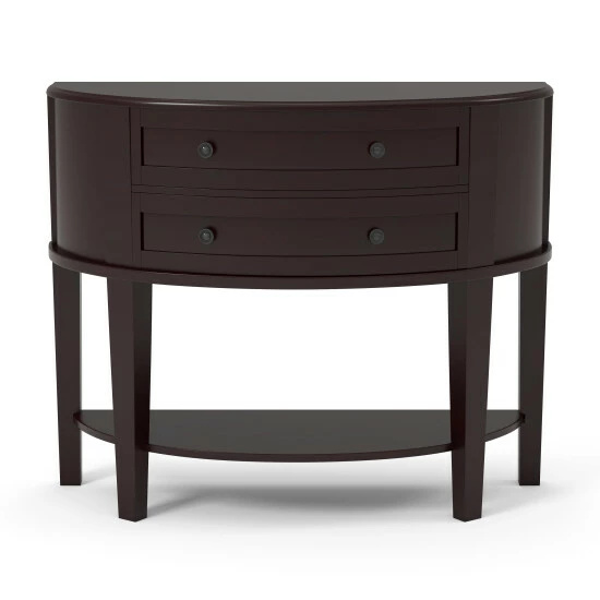 Elevate your entryway with the Rowe accent table from Furniture of America. The espresso-finished wood and veneer frame features a timeless demilune silhouette, along with tapered legs. Two drawers and an open bottom shelf create convenient storage space.