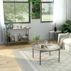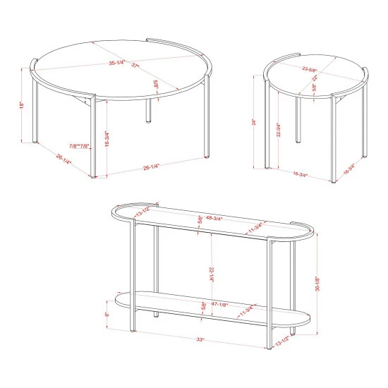 - Includes 1 coffee table, 1 side table, and 1 sofa table