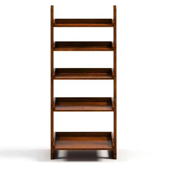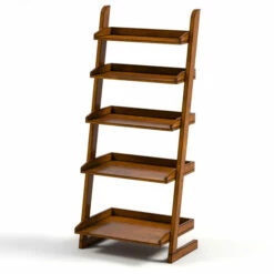 Answer your need for more space with this Furniture of America Ruse multi tiered display stand with ample shelving to spotlight favorite decor pieces. Designed with a ladder-inspired leaning profile, the bookcase features tiered shelving with shallower shelves at the top and deeper shelves at the base. Its useful tray-style shelves feature rims around the sides and backs to keep items from slipping. Its naturally inspired antique oak finish lends a touch of warmth to existing living room or home office decor and it shows off darkened edging that creates a sense of depth and aged authenticity. Its compact leaning design makes this shelf a versatile display that’s easy to fit into small rooms.