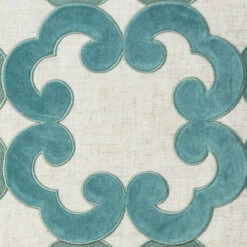 A scrolling trellis pattern is the focus of this beautiful accent pillow. Aqua and jade on beige canvas are perfect for a calm and relaxing bedroom or living room.