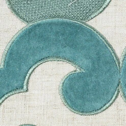 - Scrolling curves in aqua and jade are featured on this natural toned decorative throw pillow