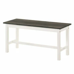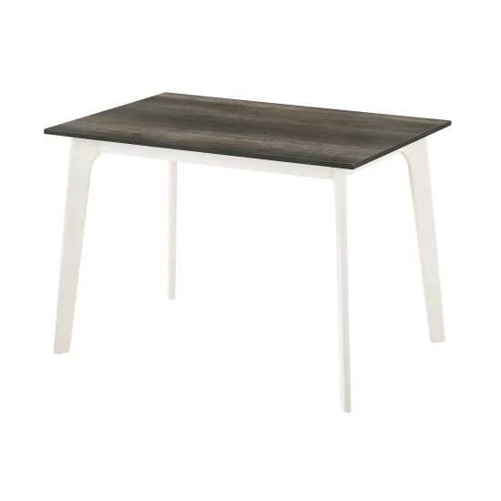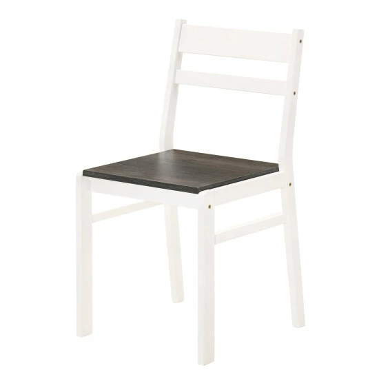 Crisp lines and a two-tone design give this transitional, five-piece table set a rich, inviting appearance for many different types of dining areas. The rectangular tabletop flaunts sleek, angled legs and an expansive surface, perfect for serving up to four guests. This five-piece dining by Furniture of America set comes with three matching ladder back chairs and a dining bench to provide plenty of support for family dining enjoyment. For support and style, the chairs offer elegant angled legs. Its durable design and structure ensure that this dining set is built to last through generations. Make this transitional style dining set the focal point in your eating area, a favorite upgrade for years to come.
