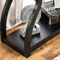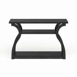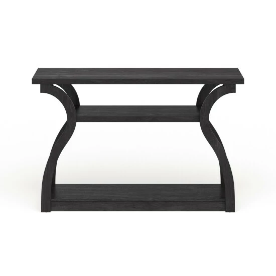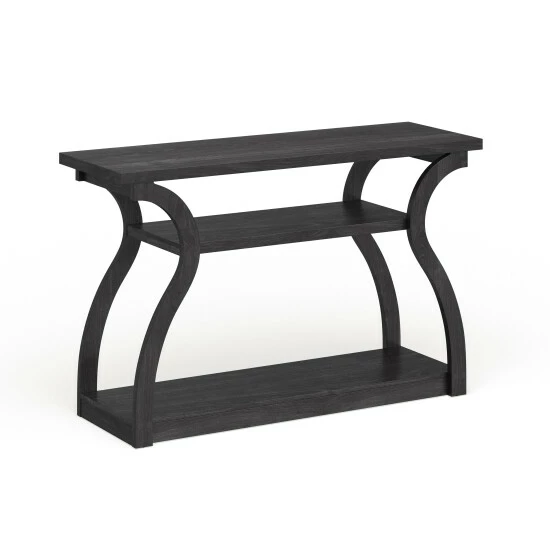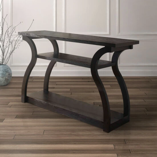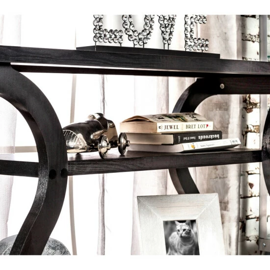 Anchor your room with the bold black lines on this open, airy console table. A true statement piece that sets the tone for dramatic, curated spaces like entryways and living rooms, its eye-catching, curved sides create a flowing look with a uniquely contemporary silhouette that captures attention, whatever your decor. Two shelves plus the spacious top surface offer generous storage and display options.