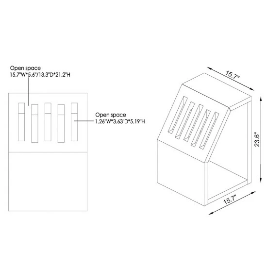 - Open space dimensions: 21.2 inches high x 15.7 inches wide x 5.6-13.3 inches deep