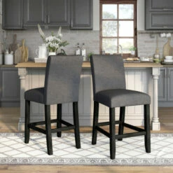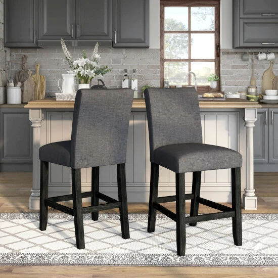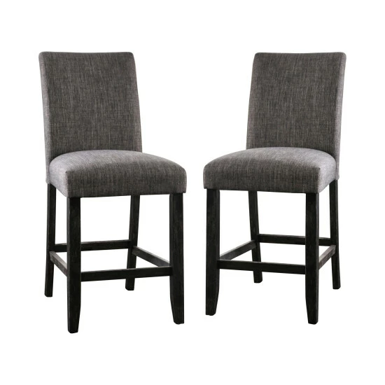 Upgrade your counter seating with these stylish Shap chairs from Furniture of America. The distressed wood frames are fitted with footrests and padded with foam for ultimate comfort. Choose from three linen-like upholstery colors to match your rustic decor.
