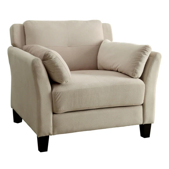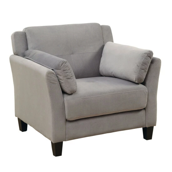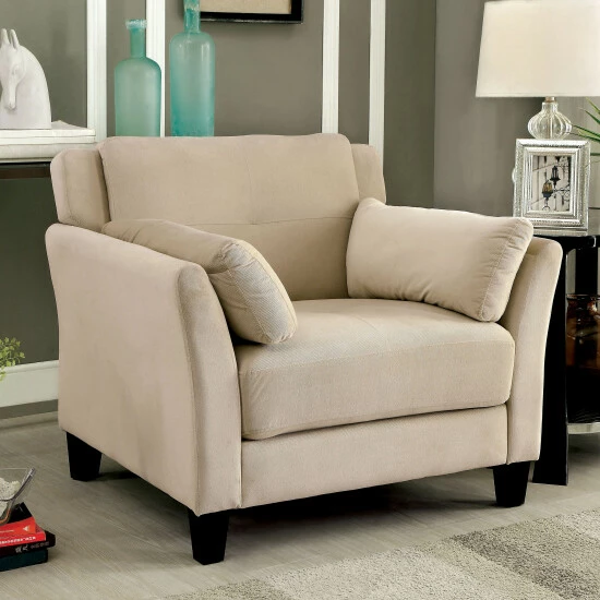 Choose this handsome contemporary chair from the Furniture of America Sier collection to soften a corner in your living space. This elegant and handsome chair is wrapped in a warming flannelette upholstery that is soft to the touch. Curl up with a good book or watch television as you sit back and unwind, complete with flared armrests with inner arm padding, as well as a subtly tufted backrests and seat cushions. This chair also rests on flared and tapered wood legs, in a dark espresso brown finish. This Sier collection also has a matching sofa and loveseat available, as well as the choice of numerous color options to suit your existing color palette or inspire a new one for a casual modern vibe.