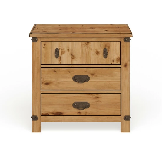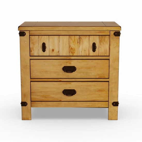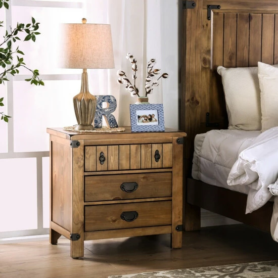 Store your bedside necessities in charming, country style with the Sierren nightstand from Furniture of America. The weathered elm finished wood and veneer frame features antique-inspired hardware, and three spacious storage drawers. Easily charge your devices with the built-in power and USB outlets.