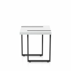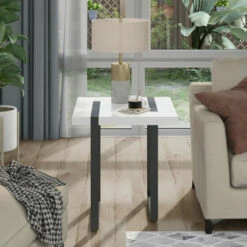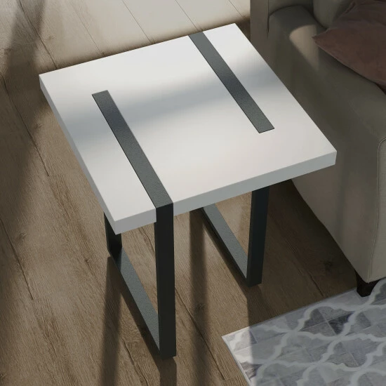 Bring a sleek and chic white end table into your contemporary living room. The lovely white tabletop is the perfect spot to display your favorite decor. Meanwhile, the eye-catching U-shaped table legs make a magnificent contrast and unforgettable stylish impression for your space.