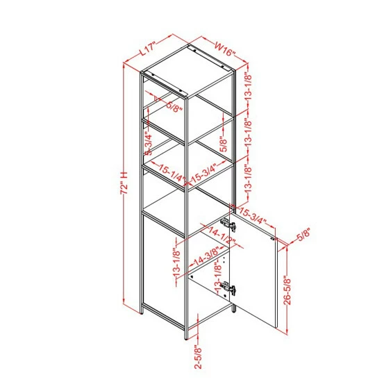 - Overall dimensions: 72 inches high x 17 inches wide x 16 inches deep