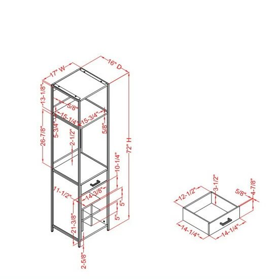 - Overall dimensions: 72 inches high x 17 inches wide x 16 inches deep