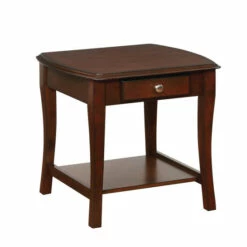 The Sova transitional oak accent table set offers three pieces that embellish a custom transitional living space. This set from Furniture of America adds a romantic upgrade with functional and fashionable tables designed to store and display, and anchor a seating ensemble in a living room or family entertaining space. Built from solid wood, each table receives a lush dark oak finish delivering versatility and infusing warmth. Flared, tapered legs and beveled ridge tabletops form a romantic silhouette, as slender drawers on table aprons offer essential storage space. Lower shelfs add even more space to display periodicals. Center drawers with polished metal knobs complete a list of features turning this delightful set into a classic. Set features a rectangular coffee table and two rectangular end tables.