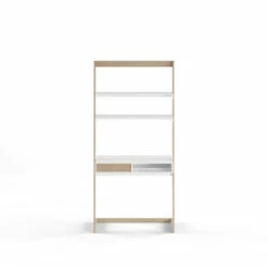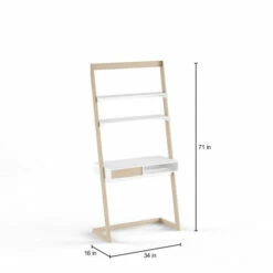 Add a serene color palette and handy utility to your hallway or office by choosing this leaning desk. This unexpected piece is ideal for compact spaces, bringing you enough room to store a laptop and a cup of coffee at your side. This leaning desk with built-in shelves is a fun alternative for any modern home. The small shelves store as storage options for small office items and decor. Its two-tone appearance accentuates the many open shelves balanced between the support beams, all while enhancing its strikingly modern appearance. This piece is crafted by Furniture of America, with an open frame design that blends into your existing decor.