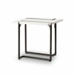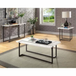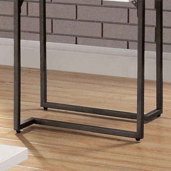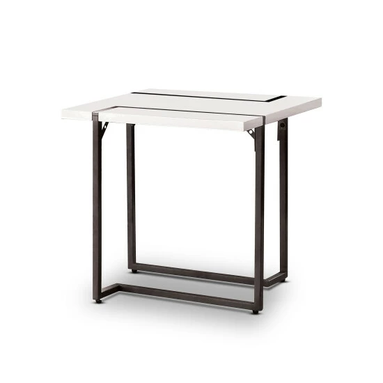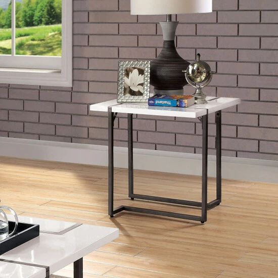 Upgrade your home decor with this contemporary two-tone end table featuring industrial touches. Made by Furniture of America for the Tawl collection, it features a contemporary design that strikes an eye-catching contrast with the gunmetal finish steel frame. Find incredible stylish appeal with the tabletop that is finished in a white high gloss lacquer. The base boasts a slightly geometric flair with angled legs for support. As an attractive and unexpected stylistic touch, the legs protrude through to the top, making it a dazzling addition to your living room or den. Choose this two-tone end table to add aesthetic flair to modern and contemporary living spaces.