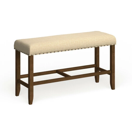 Explore an alternative dining option with the rustic design of this counter height bench from Furniture of America. It’s a charming bench built to comfortably seat two in a charming rustic oak finish that looks great with any decor, and it comes wrapped in beige padded linen-like upholstery that’s soft yet durable, with nailhead trim for a handsome rustic visual. The solid block legs taper and supportive footrests offer enduring comfort during memorable meals and chats over drinks after dinner. It’s a counter height bench that offers a rustic take on an upscale design in any kitchen counter, breakfast nook, or semi-casual dining room.