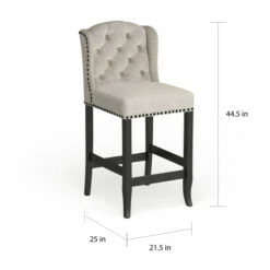 Instantly upgrade your rustic kitchen or dining area with these Tays bar chairs from Furniture of America. The antique black wood frames feature wingback seats, padded with foam, and upholstered with linen-like fabric. Button tufting adds timeless texture, while nail head trim adds a hint of shine to each of the four color options.
