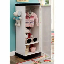 - Convenient storage space within with metal hanger pole and lower shelf divider