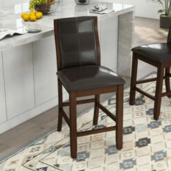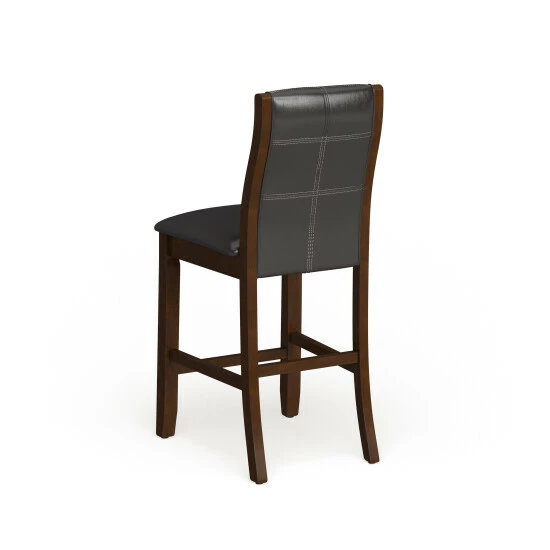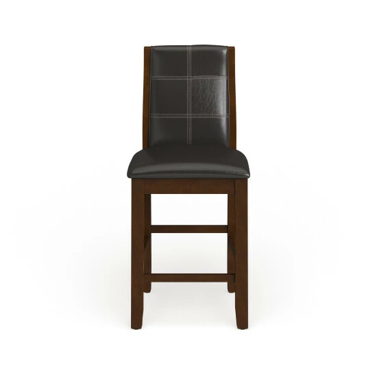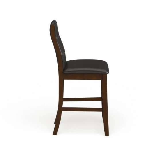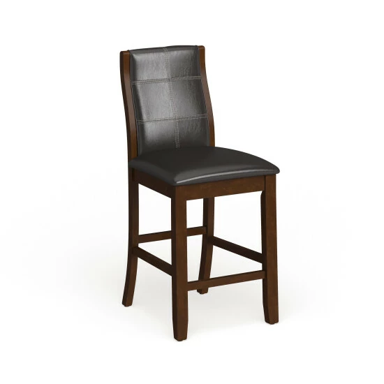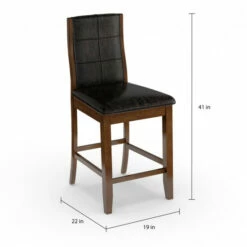 Add an elegant Italian inspired design to your dining room with these counter height dining chairs, crafted by Furniture of America, featuring contemporary lines that will blend smoothly to any modern decor. The faux leather upholstery in bold brown cherry makes a focal statement in your home. Curvy, arched back rests and well-padded seats on these two matching dining chairs provide comfort for your guests, so they’re likely linger for long conversations over coffee. Tapered legs complete the attractive look and offer extra stability to keep you from tipping over as you lean back after a big meal. This is a terrific pair of black faux leather counter height dining chairs for your contemporary eating space.