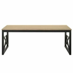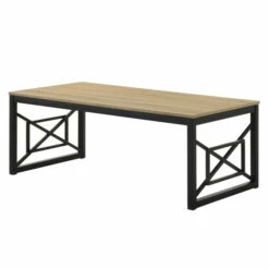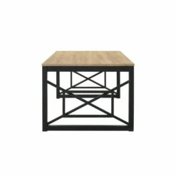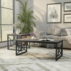 This transitional living room table set includes a coffee table and an end table. The sleigh leg design is a black finished steel frame with a unique design. You’ll find it adds modest style to your entertainment space.