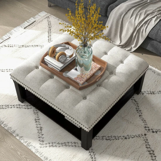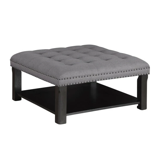 Whether you’re resting your feet or looking for an extra seat, this ottoman is perfect! Its oversize manufactured durable rubberwood frame offers space aplenty for feet, snack trays, and weary behind, while its beautifully contrasted linen upholstery lends a touch of understated style to this living room must-have. Nailhead detailing around the lower edge adds another layer of sophisticated flair.