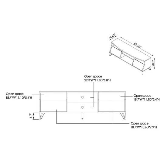 - Overall dimensions: 20.3 inches high x 63 inches wide x 15.62 inches deep
