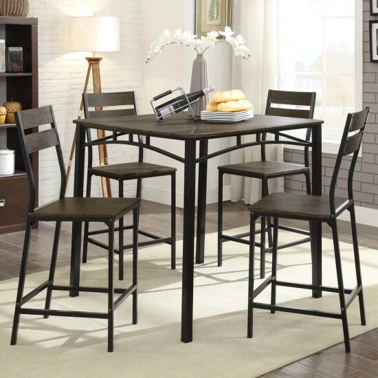- Includes 1 counter height dining table and 4 counter height dining chairs