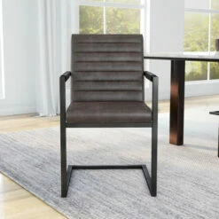 A perfect blend of style and versatility, these set of 2 upholstered armchairs with sled bases fit right at home at the dining table or in the den. Soft fabric with a worn-in look adds character while cushions are both streamlined and wonderfully padded for comfort.